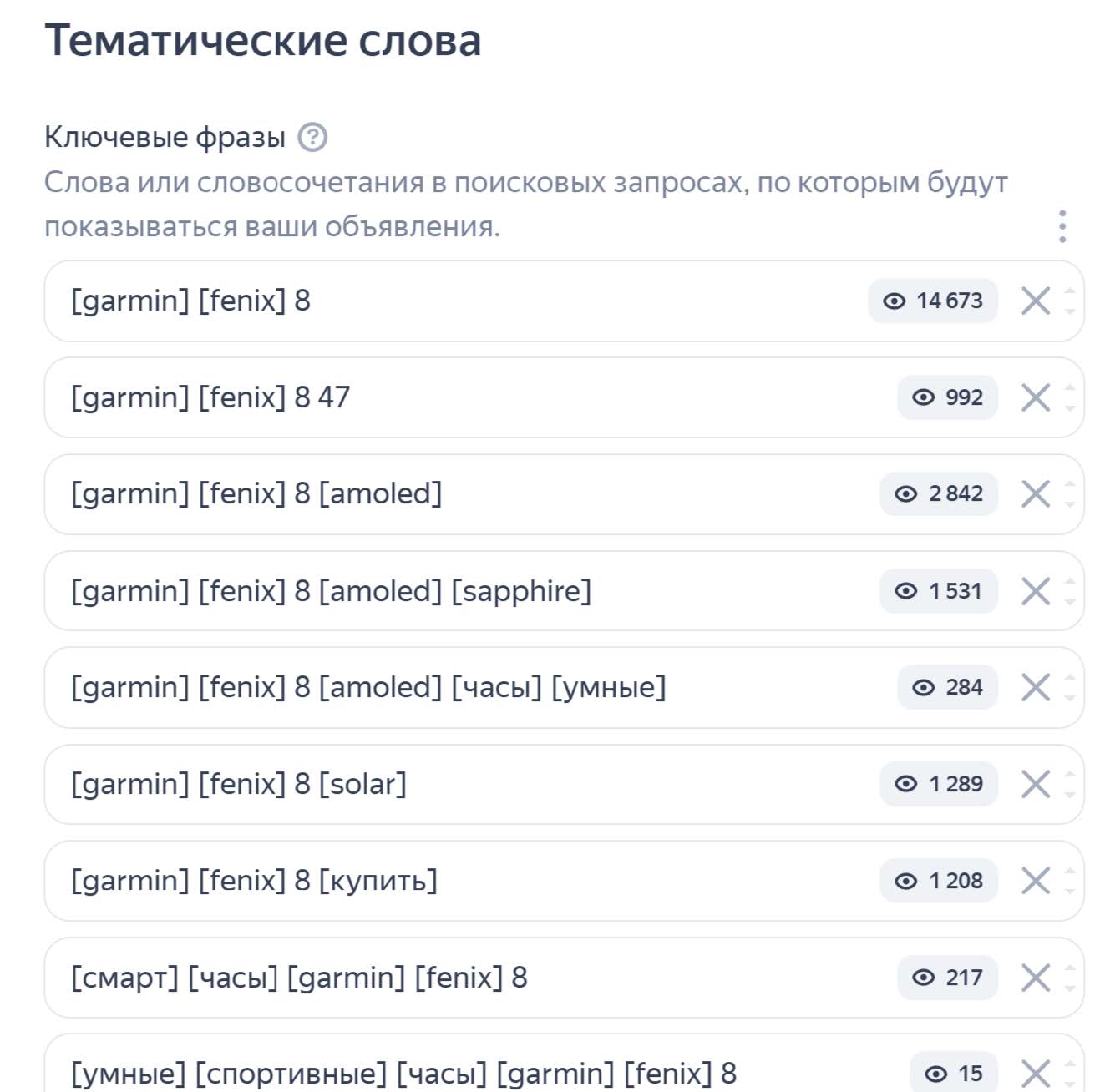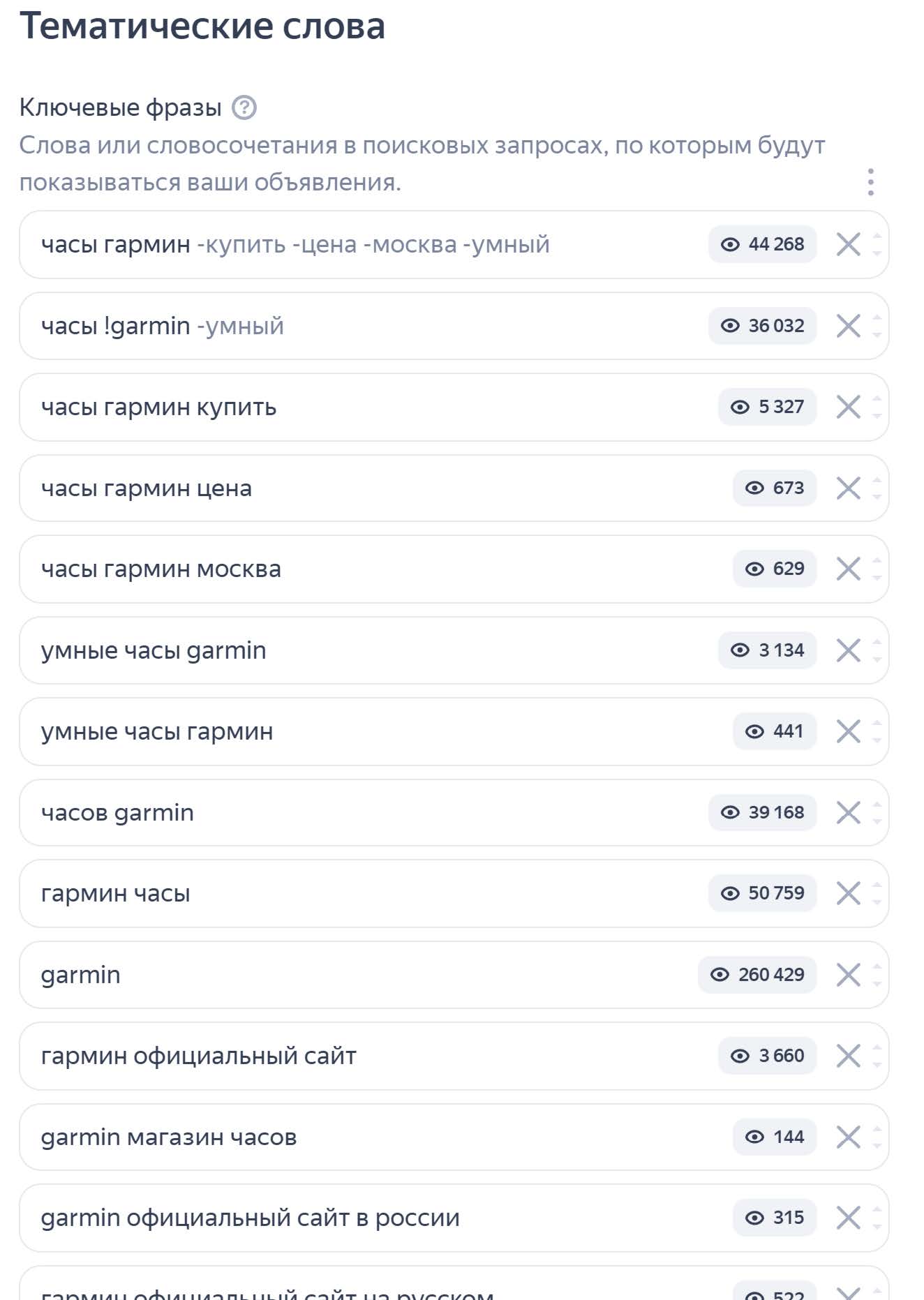 Тестировали всевозможные лайфхаки от яндекс-экспертов. Например, минимизация семантического соответствия, которое значительно съедает бюджет мусорными запросами