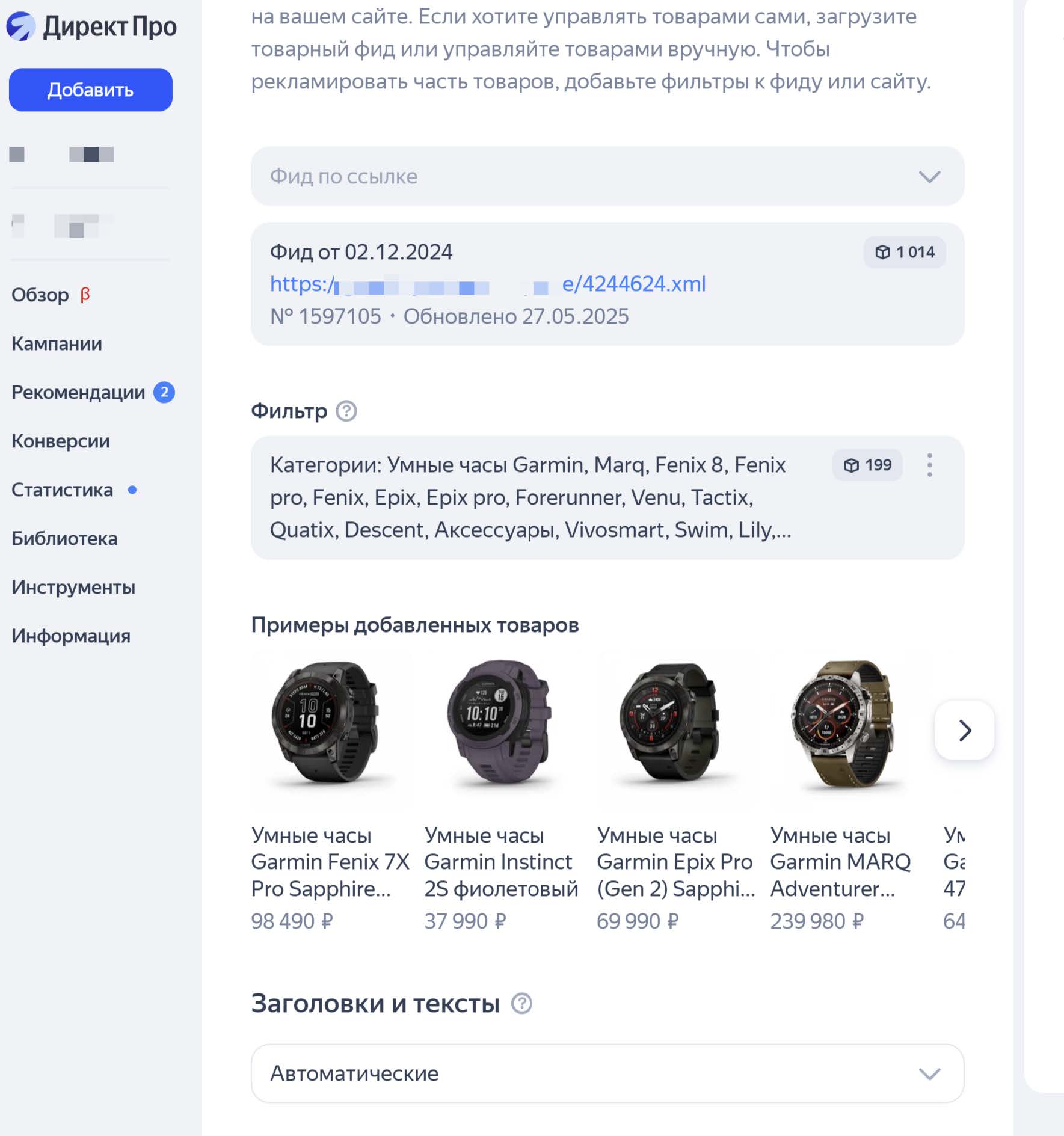 —проработаны заголовки товаров в фиде, так как они участвуют в таргетинге и напрямую влияют на релевантность показов товарных кампаний