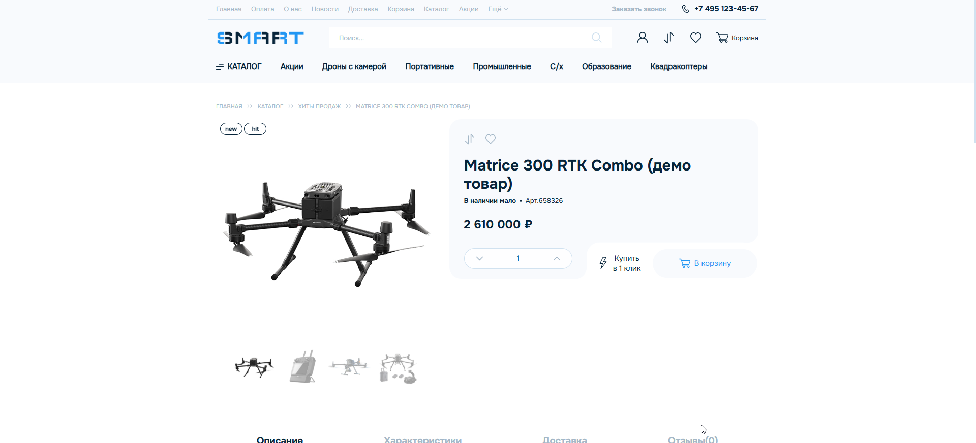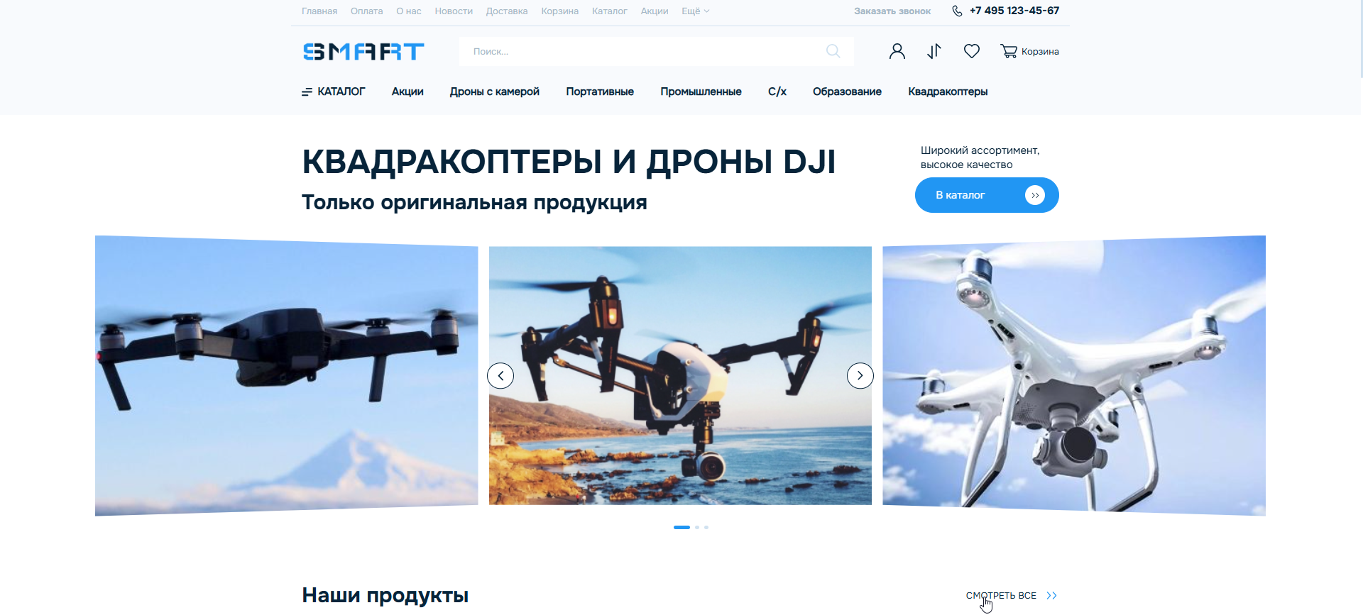 3. Создайте продающий сайт. Не экономьте на современных фото, фильтрах по характеристикам (например, время полёта, радиус управления, видеосъёмка, бренд), инфографике, карточках товара с видеообзорами.